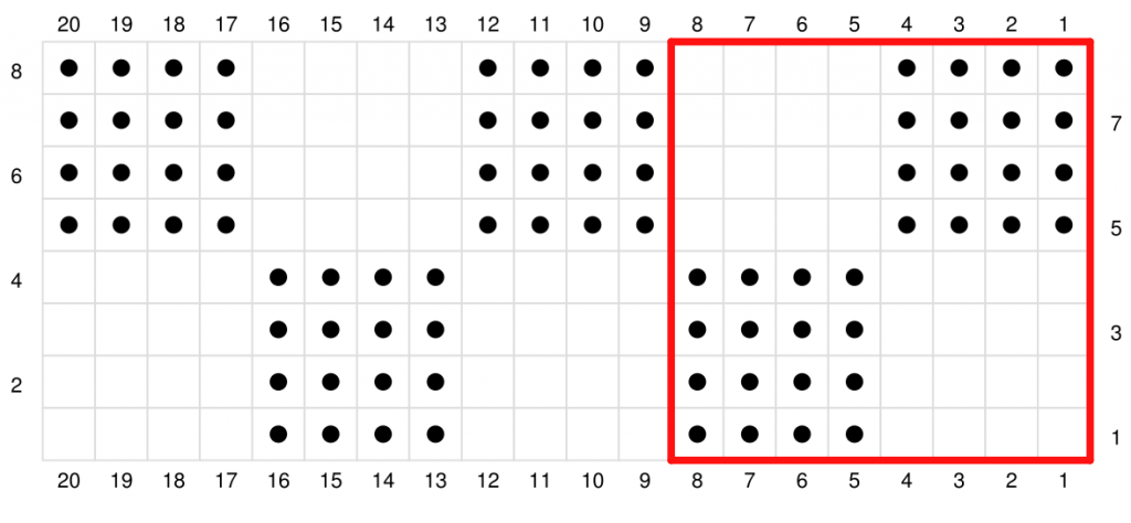 Anschlag: Ein Vielfaches von 8 + 4 Maschen.