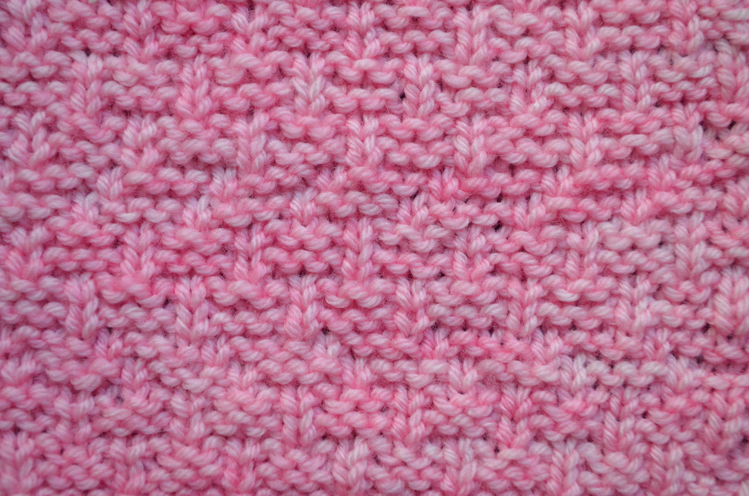 Das Muster entsteht durch das abwechselnde Stricken von rechten und linken Maschen über mehrere Reihen, um eine gewebte Optik zu erzeugen.